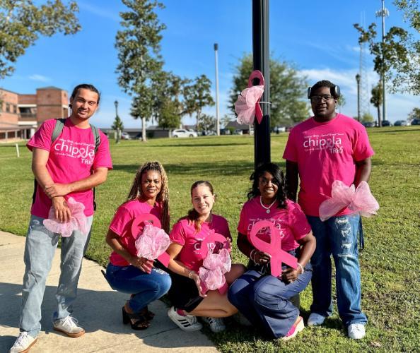 Chipola TRiO Society students kicked off October by placing pink ribbons across campus to spread awareness.