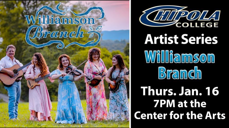 The 2025-2026 Chipola College Artist Series season rounds out on Jan. 16, 2026 with WILLIAMSON BRANCH.